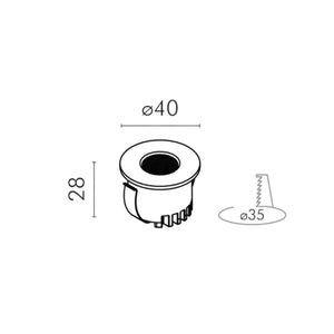 - Dimensions : Ø40 × 28 mm – built-in hole Ø35 mm