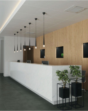 A Minimalist Cylinder of Light - The minimalist cylindrical design of these lamps catches the eye with stunning simplicity. The black and white color combination adds contrast and balance, making every detail of these pendants a work of art . With a height of 42cm and an adjustable cable of 158cm the pendant lamp extends a maximum of 2m, versatility is at the heart of their design. Perfect for kitchen islands , dining tables , commercial counters in shops, restaurants and pubs.