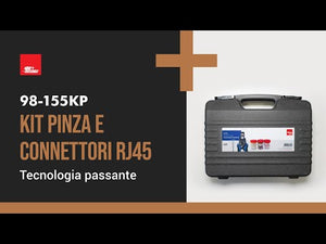 Pince à sertir professionnelle en acier pour fiches traversantes RJ45 avec étui pratique et fiches RJ45 assorties.