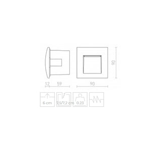 Les lampadaires ont une puissance de 1,5W avec une sortie de 30 lumens (lumière chaude 3000K) et sont alimentés en 230V. Le degré de protection IP65 rend le balisage LED mural idéal pour les installations extérieures et intérieures. Boîte arrière incluse.