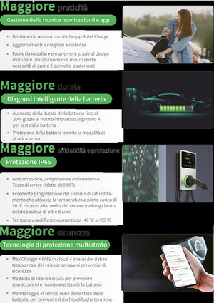 Colonnina di Ricarica Auto Elettriche 22KWw Trifase Autel IP54 Senza Cavo