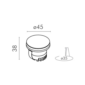 - Faretto led incasso cartongesso con struttura rotonda Ø 45 mm e altezza 38 mm